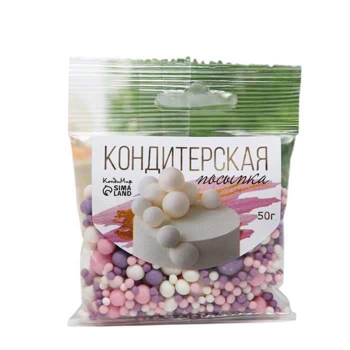 Кондитерская посыпка с мягким центром «Жемчуг»: белоснежная, розовая, сиреневая, 50 г
