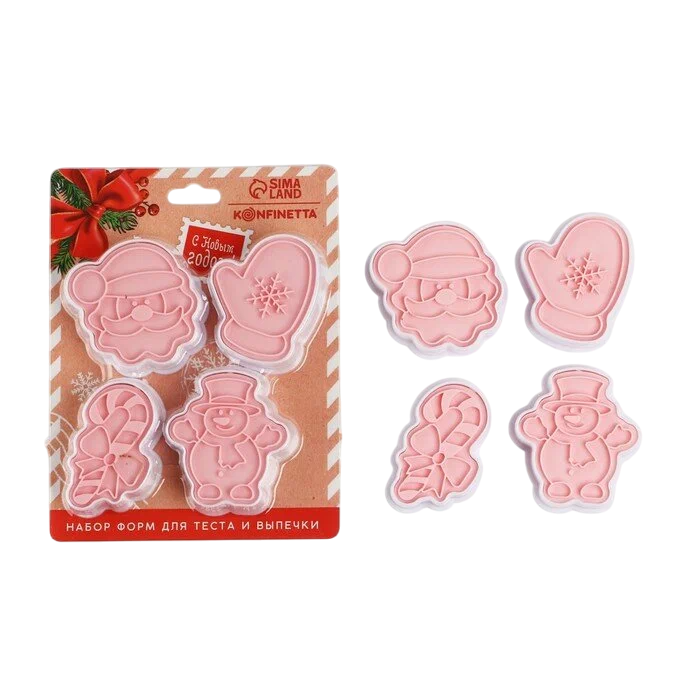 Новый год. Набор форм для печенья «Посылка от Деда Мороза», пластик, 4 шт