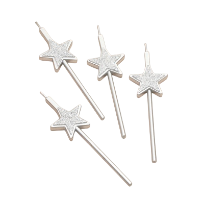 Свечи для торта 4 шт. «Блестящие звезды», серебряные