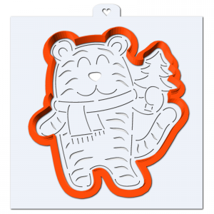 Тигренок с елочкой №2. Форма для пряников с трафаретом ZTF. (Трафарет+форма)